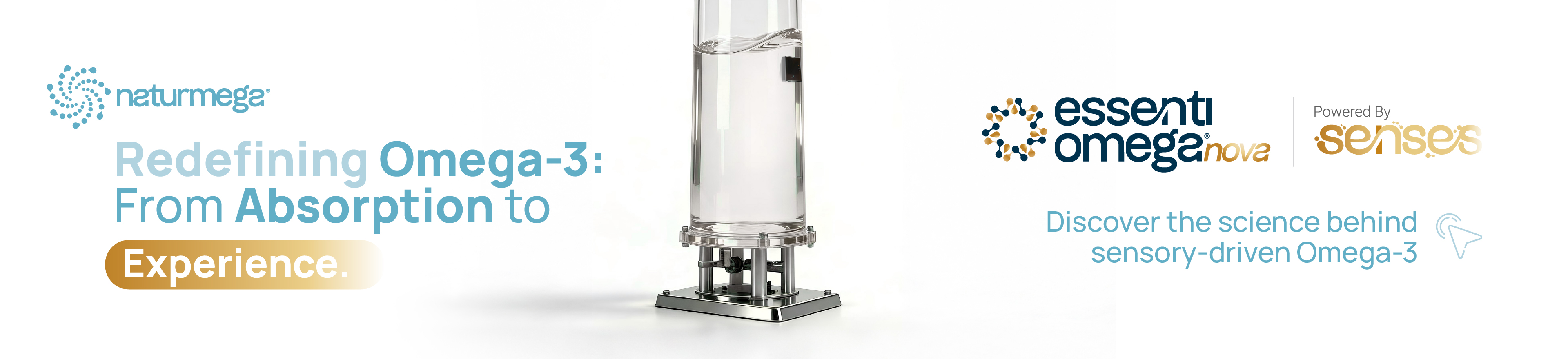EssentiOmega® Nova: ultra-purified, high-concentration fish oil solutions developed under the SENSES philosophy, where sensory performance (neutral odor, taste, and color) is intentionally engineered through advanced purification rather than corrected downstream