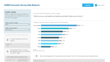 A dashboard for exploring GOED's consumer surveys over 12+ years and in 20+ countries Learn More »
